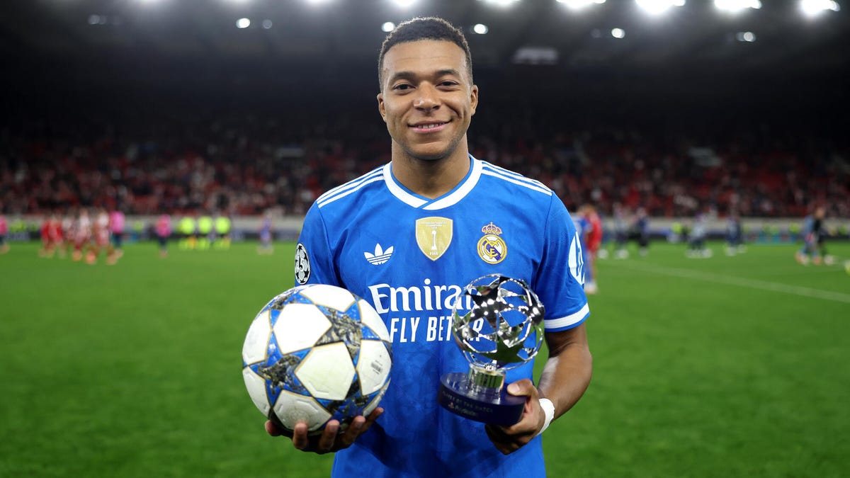 Kylian Mbappé was on fire on Wednesday, scoring all four goals in Real Madrid’s 4-3 UEFA Champions League win over Olympiacos.